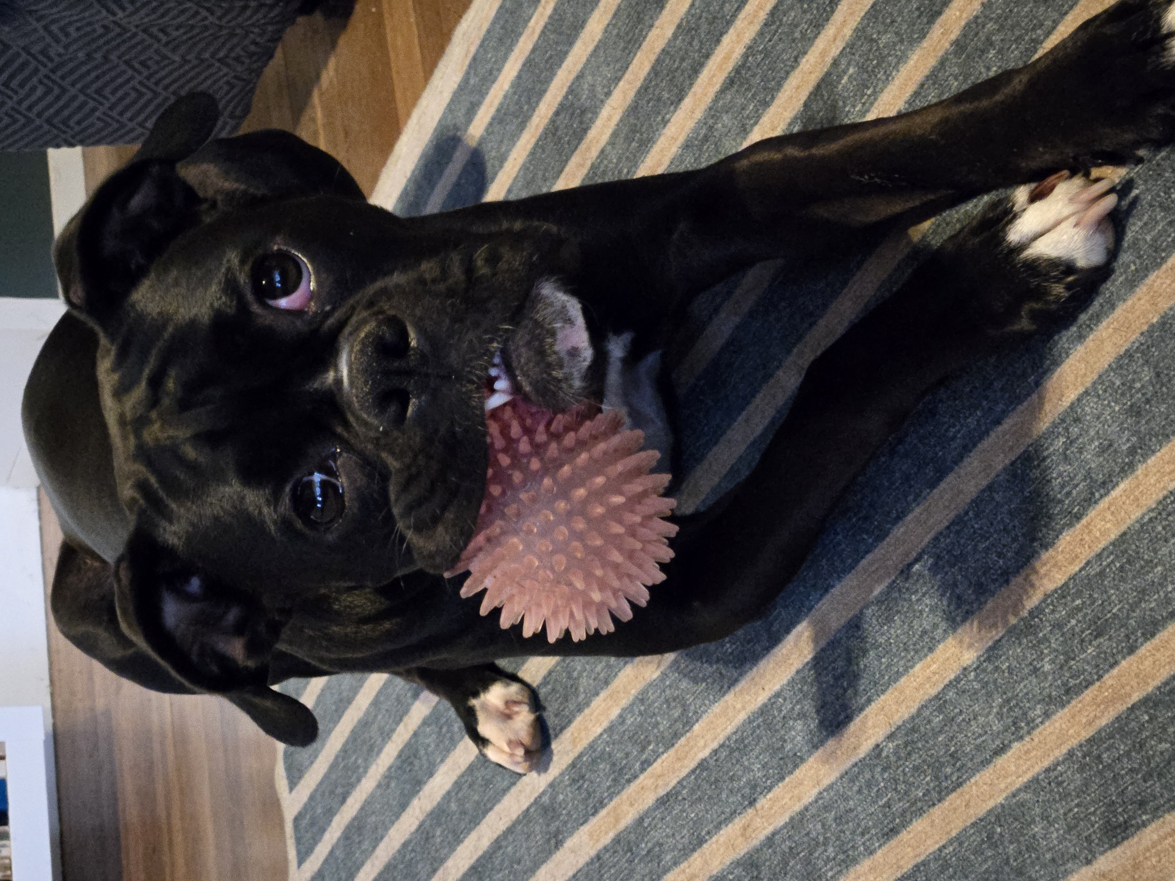 Otto was added to the pack to shake things up a bit and give Poppy a playmate! He loves to snuggle and give kisses! He already knows how to high 10 - and he's been known to escape by unlatching the screen door and waltzing right outside.