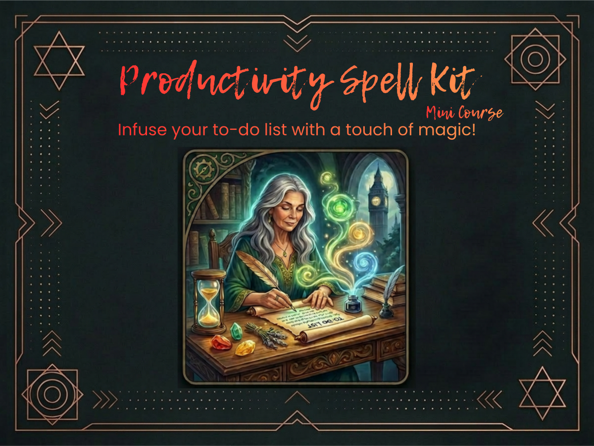 Feeling scattered, stuck, or just plain overwhelmed? The Productivity Spell Kit is your magical toolkit for focus, flow, and follow-through. With 5 guided spells (aka rituals and practices), you’ll learn how to clear your space, set powerful intentions, and work in harmony with your energy instead of against it. Perfect for witches, creatives, and soulful seekers who want to get shit done without losing the magic.